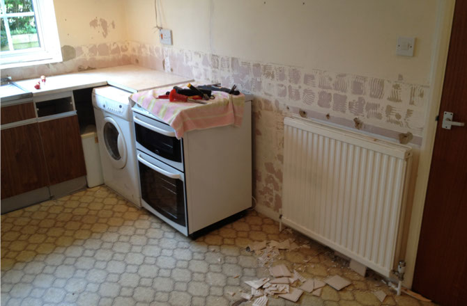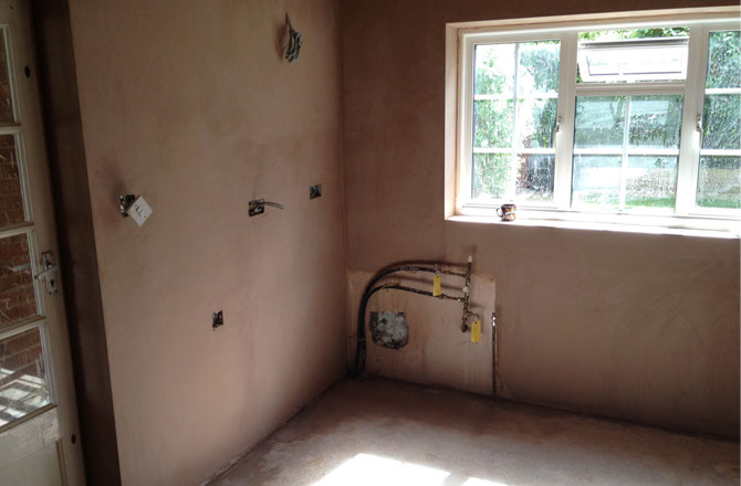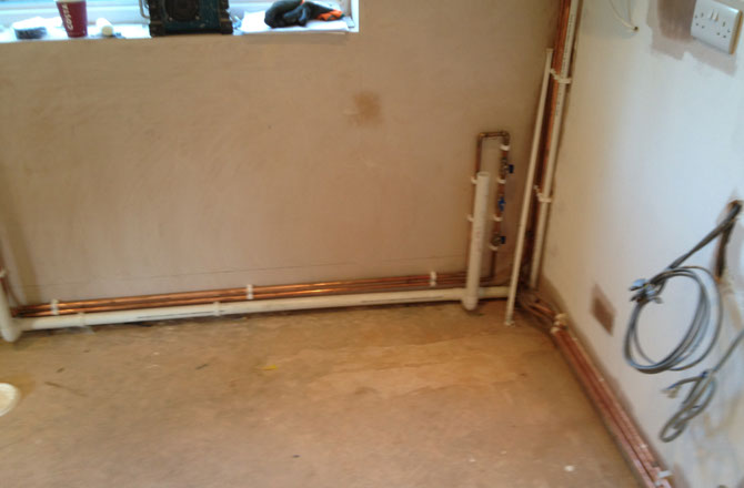 Stage 3 - Run all new pipework and wiring to accommodate new kitchen, and then plaster the room.